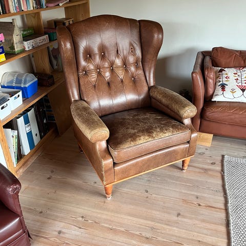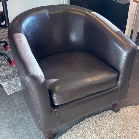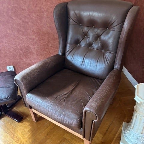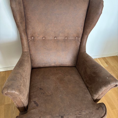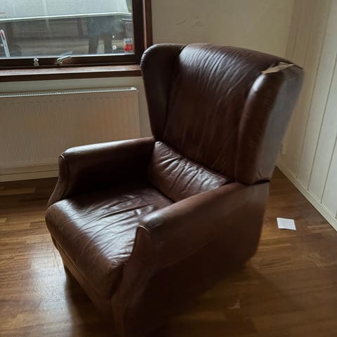 Brun skinnfåtölj