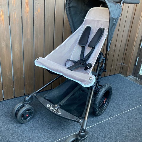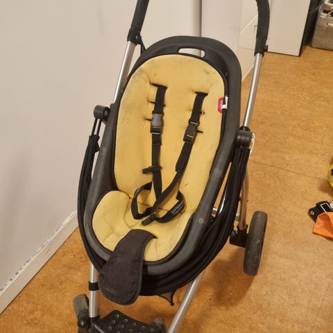 Vagn från Phil & Teds. Vi köpte den när barnen inte längre behövde en bugaboo/liknande. Denna går att fälla till nästan helt plant liggläge. Det finns fotstöd att fälla upp och suffletten kan täcka hela vagnen om man vill. 4-punktsbälte, handtag, varukorg nedtill, mjuk dyna. Går att fälla ihop helt.