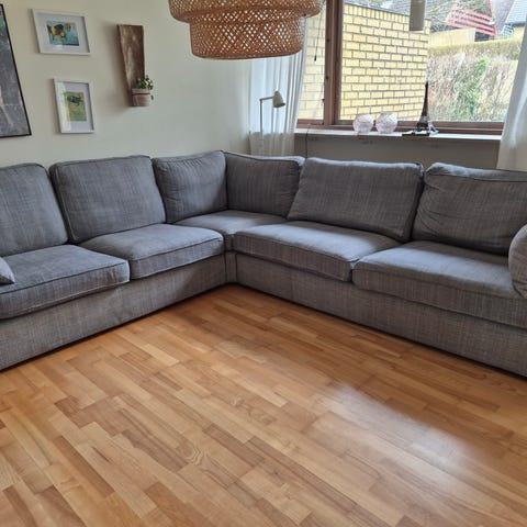 Ektorp sittdyna skänkes. Syns lite på klädseln som inte går bort i tvätten och så är den en liten skada på insidan av botten. Men fram tills nu har det ändå legat gardiner i den. Fullt användbar.