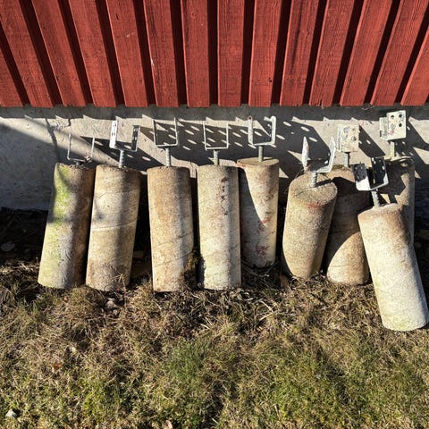 Säljer 6st betongplintar med ingjuten stolpsko (U-beslag), inköpt på Byggmax.