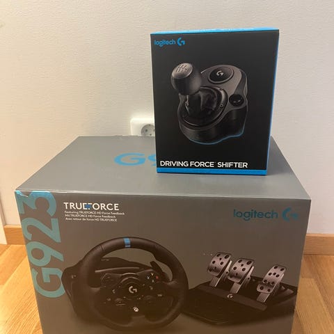 Säljer min Logitech G923 med pedaler och växelspak.