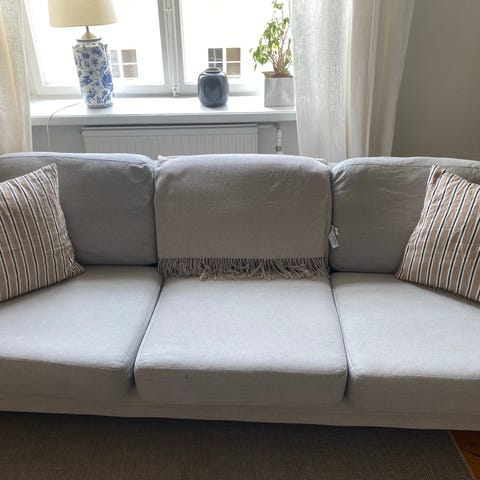En fin rosa bäddsoffa inköpt på Stalands.