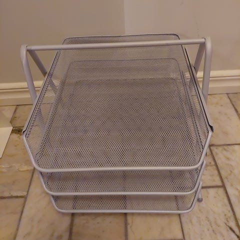 Granit rullvagn i metall på hjul. Vagnen har flera trådkorgar i höjdled för förvaring och är försedd med hjul för enkel förflyttning. Passar till exempel i badrum, kök, förråd eller tvättstuga för förvaring av mindre saker och textilier.