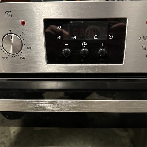Inbyggnadsugn Electrolux med varmluft i rostfritt utförande.