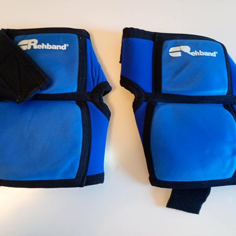 2. Budo Nord ben-vristakydd blå, strl M. I gott skick, inget slitage.