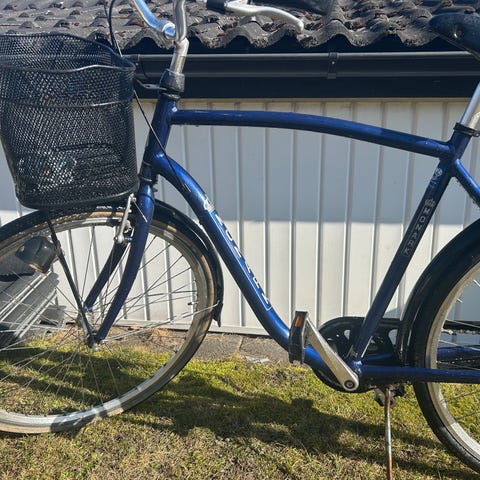Crescent herrcykel med ramstorlek 51cm och 28" hjul. Cykeln har klassisk herrram och är rosa med vita detaljer. Utrustad med pakethållare bak, kedjeskydd, reflexer och belysning fram och bak enligt bilder. Lämplig för vuxen man med passande längd för 50 cm ram och 28" hjul, för vardagscykling och transporter i stadsmiljö eller på landsväg OBS .Behöver Renoveras Växlarna på cyklen fungerar ej. Sadlen är sprucken i fästet under. Däcken är fram ca 2 år gammalt och bak ca 4år. ( OBS HÄMTAS PÅ PLATS OBS )