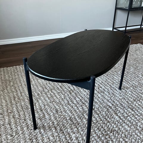 Soffbord i lackerad metall med matt snygg yta. Från Mio. Mått: H 39 cm, diameter 90.