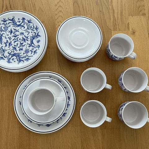 Tre kaffekoppar med tillhörande fat från ARABIA modellen Arctica