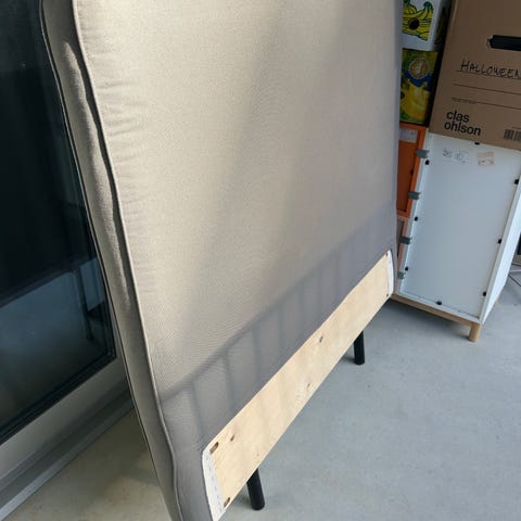 Denna har använts i en kontinentalsäng men vi har tagit bort denna då vi ville ha lägre säng.