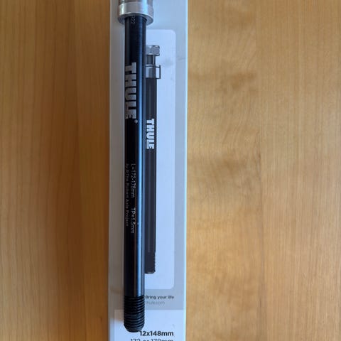Hej säljer en Thule thru-axle som är 12×172-178 1.5. Se bild. Använd till en thule chariot