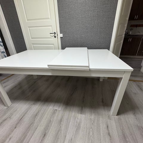 Ett Bjursta utdragbart matbord med 4 stycken stolar till salu. Matbordet är 115cm ihopdraget och 166cm utdraget.