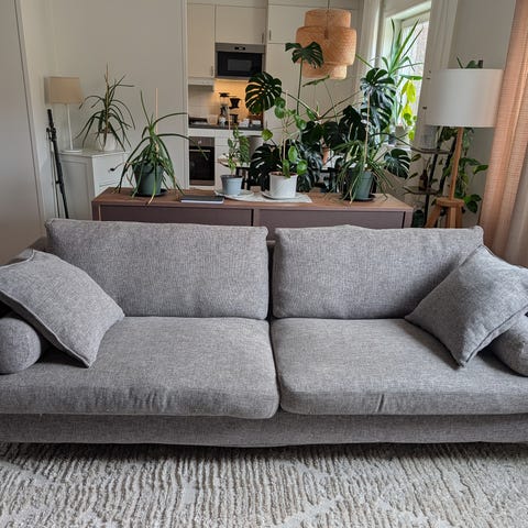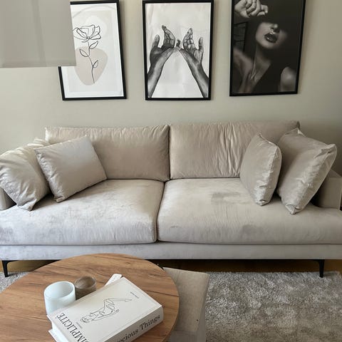 The sofa's cushions and pillows have removable covers. See the washing instructions for the fabric you choose.