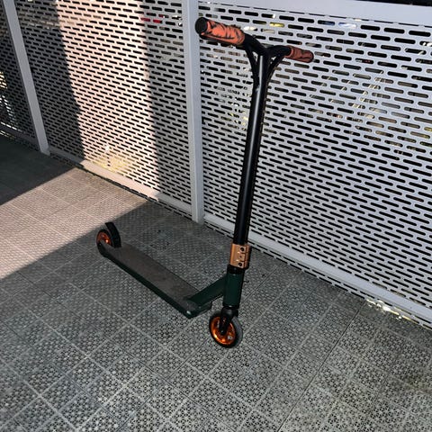 WARP Pro sparkcykel i grön och svart färg. Modellen är en trick-/stuntsparkcykel med robust konstruktion anpassad för åkning på gata eller i skatepark. Styre och deck är utformade för bättre kontroll vid hopp och trick. Hårda hjul ger stabilitet vid åkning på hårt underlag. Passar barn och ungdomar som vill ha en enklare trickmodell för vardagsbruk och lek.