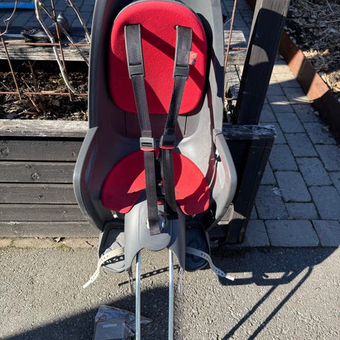 Cykelstol Hamax. Fotsspännena saknas. Inklusive två ramfästen. Kan mötas upp i centrala Stockholm under dagtid.