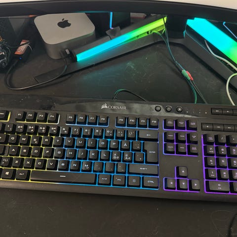 Corsair K55 RGB Pro gamingtangentbord med USB-anslutning. Fullstort tangentbord i svart med numerisk del och multimedieknappar. Utrustat med RGB-belysning och utformat för stationära datorer. Passar för allmän datoranvändning och spel där ett membranbaserat tangentbord med bakgrundsbelysning önskas.