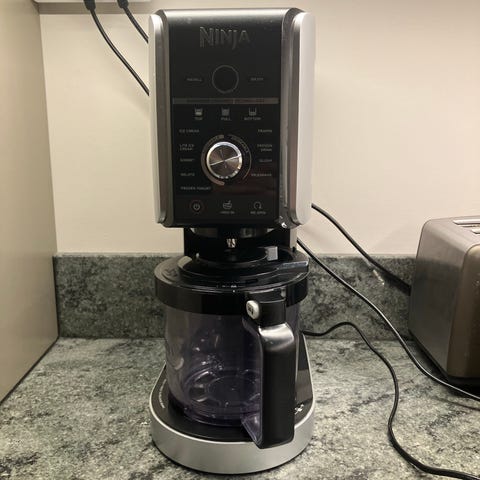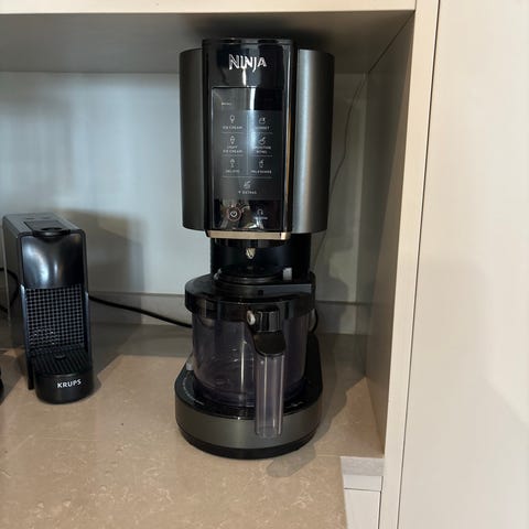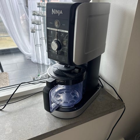 Ninja glassmaskin i bänksmodell i svart utförande. Maskinen har flera programval enligt panelen på framsidan, bland annat för glass, sorbet, mjukglass, milkshake och liknande frysta desserter. Utrustad med tydlig knappanel framtill och avtagbar behållare nedtill. Ansluts med vanlig nätsladd till vägguttag. Passar för tillverkning av hemmagjord glass och andra frysta efterrätter i kök, jag har gjort glass 3 gånger i den sen tröttnade jag på den , jag Vann den på jobbet så har varken kvitto eller kartong pris 1300kr priset kan diskuteras vid smidig affär