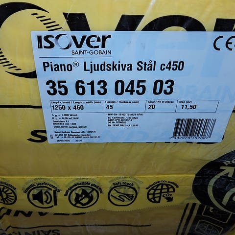 Isover fasadskiva 30 alu. En oöppnad förpackning (Sex skivor), två skivor samt en skiva som är avsågad.