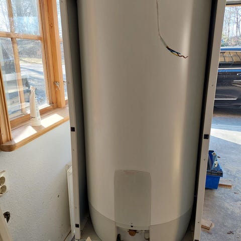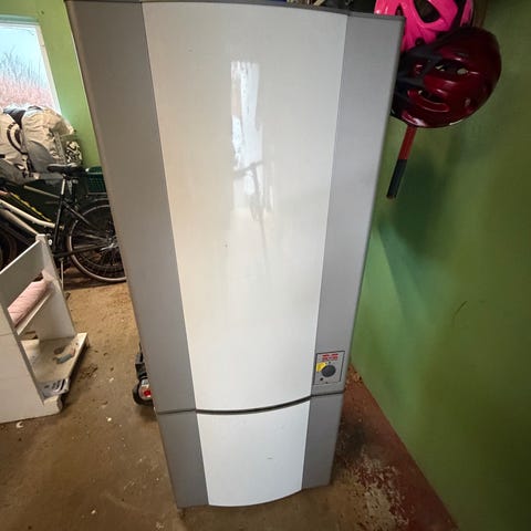 Metro Therm varmvattenberedare med effekt 1,5 kW. Enheten är vit och avsedd för uppvärmning av tappvarmvatten. Märkplåten anger IP24-klassning. Utrustad med termostatreglage och anslutningar för kall- och varmvatten. Lämplig för installation i bostad eller andra utrymmen där varmvatten behövs, enligt tillverkarens anvisningar och gällande installationsregler.