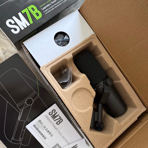 Røde NT1-A kondensatormikrofon i silverfärg. Ingår chockfäste och bordsarm/fäste för montering på bordskant. Mikrofonen är avsedd för inspelning av tal och sång i studio- eller hemmamiljö och ansluts via XLR-kabel (ej synlig på bilderna). Setet lämpar sig för exempelvis podd, streaming eller musikproduktion där fast montering och vibrationsdämpning önskas.