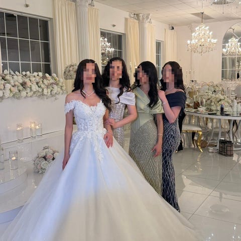 Säljer min underbara Brudklänning i siden i storlek XS. Klänningen är vit/kräm och har en utsmyckad överdel med dekorativa detaljer samt en vid kjol. Passar som fest- eller brudklänning för dam. Materialet är siden enligt uppgift och ger en glansig yta. Klänningen har ärmlös design med diamantdesignat överdel. Bakdelen har korsett som gör att man kan tajta till eller lossa. Använd en gång. Köpt från Turkiet. Ord. Pris 50.000:-