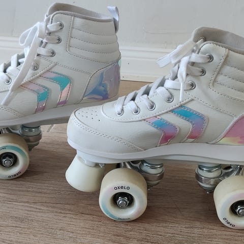 Oxelo rullskridskor för barn i storlek 35. Klassisk modell med hög skaft för bättre ankelstöd och snörning framtill. Hjul och truckar är anpassade för rullskridskoåkning på jämna underlag. Färg svart med ljusa hjul. Passar för fritidsåkning och enklare träning inom rullskridskor och inlines.