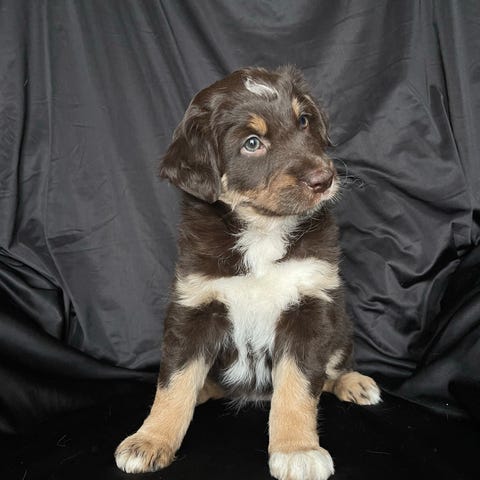 Thiago är färg svartbrun och är som mamman att han kommer ljusna med åldern och för varje klippning, vilket syns redan då han har partier där han är ljus redan.