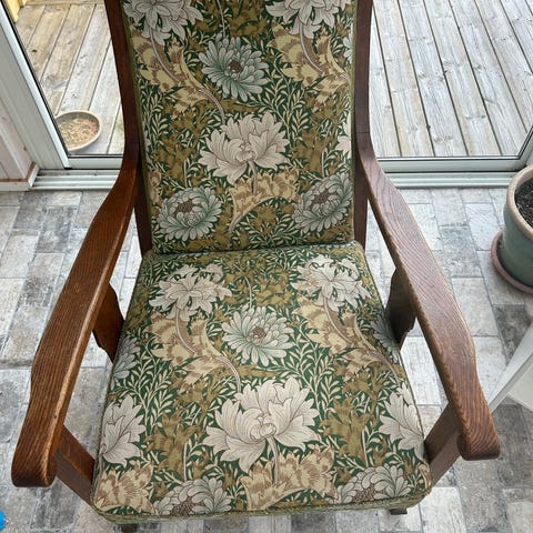 Två fina fåtöljer i trä med randigt tyg