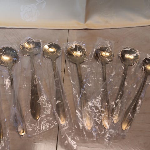 Antika skedar i metall snäckformade serveringsskedar