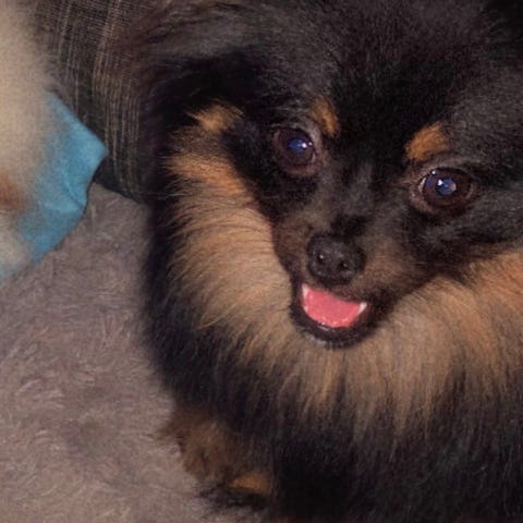 Mamma är Crestepoo (Blandning Kinesisk Nakenhund och Dvärgpudel) färgen silver och född svart så bleknat med åldern. Hon är 26 cm hög väger 3-4 kg.