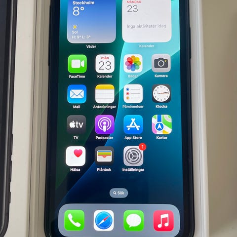 iPhone XR svart, 64gb. Någon liten spricka annars fint skick. Batterihälsa väldigt bra, se bild.