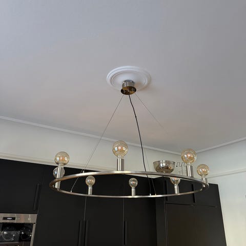 Lampan kräver 8 ljuskällor med sockel G9, vilket medföljer (dimbara).