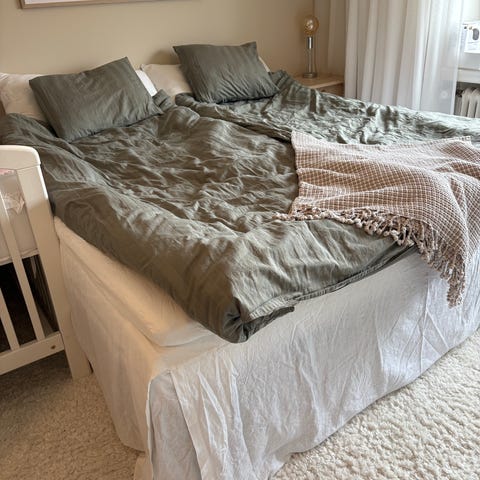 Säljer min 180-säng (kontinentalsäng) då vi ska flytta och behöver en mindre.