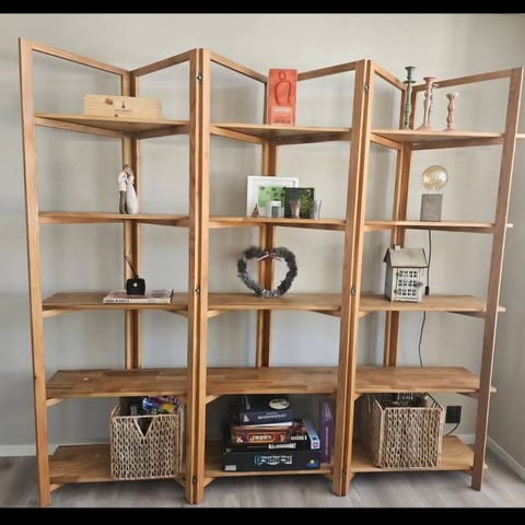 Säljer en specialbyggd, mycket kraftig hylla i massiv svartbetsad ek. Perfekt för tunga lagböcker eller liknande då den är hela 4 cm tjock och extremt stabil.