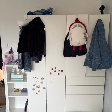 En vit garderob från Ikea samt en garderob i samma modell med rosa dörr, båda i fint skick. 250 kr st. H = 236, B = 50, D = 57,5
