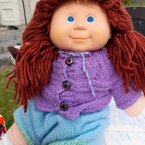 Rubens Barn docka i tyg med lockigt hår. Dockan är mjuk och stoppad med textilfyllning och har broderat ansikte. Kroppen är i beige tyg och dockan saknar kläder på bilderna. Passar som leksak för barn eller som samlarobjekt för den som gillar Rubens Barn-dockor.