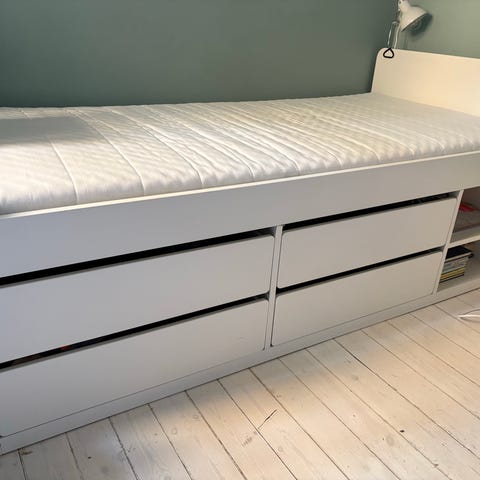 Säng 90*200 ”släkt” från ikea skavanker finns som små märken annars inge anmärkningar. 800kr