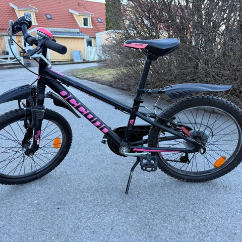 Säljer en snygg röd och mycket lätt barncykel från välkända Frog i hjulstorlek 20”.