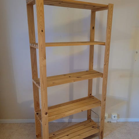 2 st hyllor i trä med mått enligt bild nr 2. Hämtas på plats i Eksjö.