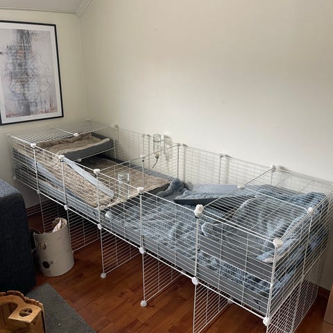 Smådjurs hage i svart metall. Består av 24 gallersektioner varav en med dörr. Kan byggas som inhägnad eller bur i olika former och höjder beroende på hur sektionerna monteras. Lämplig för mindre sällskapsdjur där man önskar en flexibel lösning som kan plockas isär och förvaras platt när den inte används.