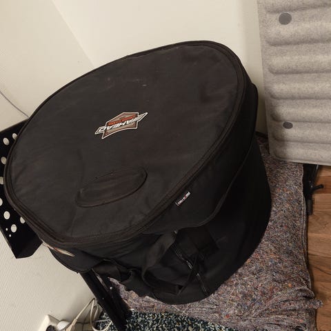 Lite använd trummatta med en praktisk stoppkloss för bastrumman som förhindrar att den flyttar sig när man spelar. I mycket gott skick.