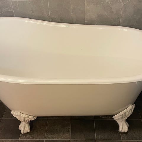 Gjutmarmor badkar med krom lejontassar.