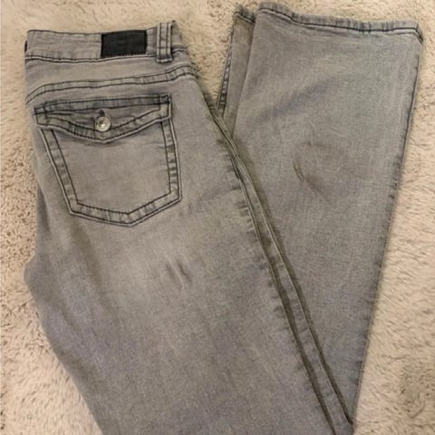 H&M Bootcut Leg jeans för flicka i storlek 158. Byxorna är blå och tillverkade i bomull. Modellen har bootcut-ben och låg midja. Klassiska fem fickor, knapp- och dragkedjestängning framtill samt bälteshällor i linningen. Passar vardagsbruk och kan kombineras med olika överdelar för skola och fritid.