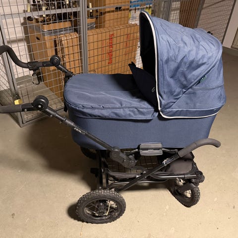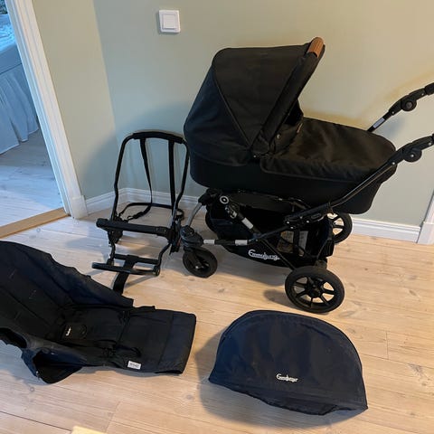 Fördelen med denna är att sittdelen är större än en bugaboo t ex, så den går att använda även när barnet är lite äldre.