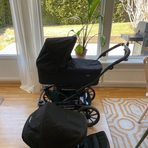 Emmaljunga barnvagn med liggdel och sittdel svart