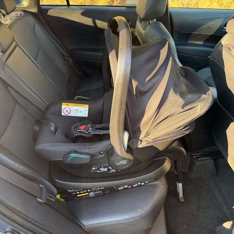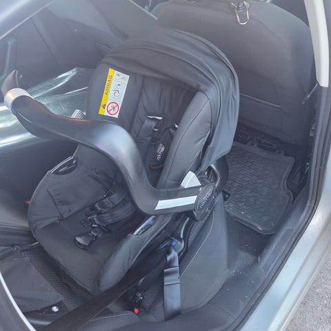 Baby-Safe Core babyskydd från Britax Römer med en avtagbar, tvättbar klädsel. Det har ett justerbart huvudstöd och ett avtagbart spädbarnsinlägg. Bas till skyddet ingår (isofix)
