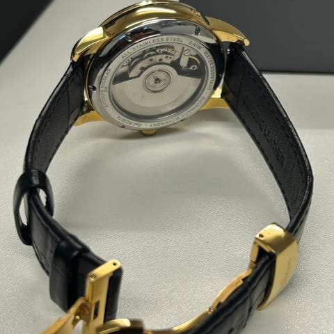 Sinn herrklocka med svart urtavla och tydliga vita index och siffror. Boett i metall med matt finish och skruvad krona. Klockan levereras med vävt textilband i grå/grön ton och viklås. Datumvisning finns vid kl. 3. Medföljer originalask och all dokumentation enligt bild. Lämplig som vardags- och bruksklocka för man.