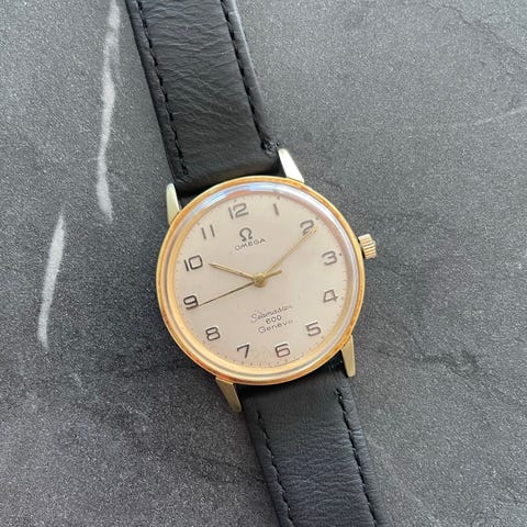 Omega Speedsonic från 1974 med blå urtavla och blått läderband. Klockan har kronograf, datumvisning och tydliga indexmarkeringar. Boetten är i metall med rundad fyrkantig form. Passar för man och är lämplig som vardags- eller dressklocka. Levereras i Omega service etui enligt bild