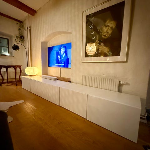 Vintage möbel som jag fått omslipat och betsat väldigt cool design lite ostabilt att bära och flytta men sen står den stabilt en liten fläck annars väldigt fin för övrigt