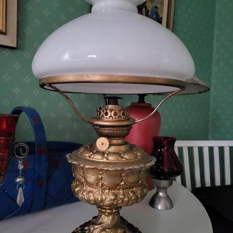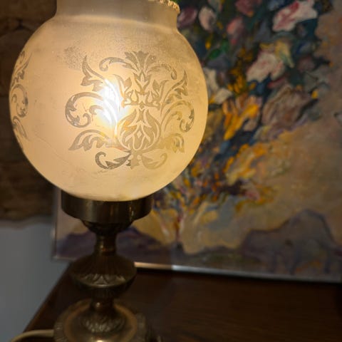 Bordslampa i Jugendstil. 65cm hög. Bra skick.