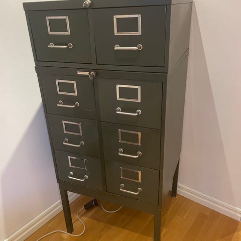 Gammalt arkivskåp, omlackerat, fint skick, 5 lådor med botten, alltså ej för hängmappar.